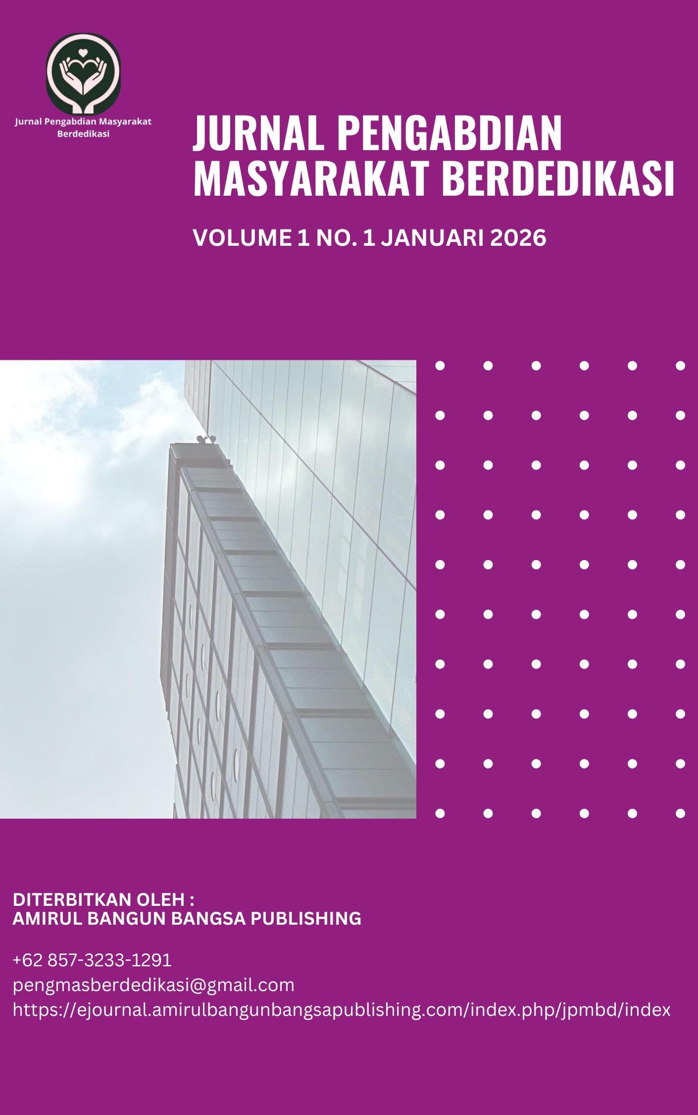 Jurnal Pengabdian Masyarakat Berdedikasi publishes articles 4 (Four) times a year (January, June, Oktober, Desember). It disseminates thoughts and ideas based on the results of research and the use of technology implemented in the public sector. The fields of study include but are not limited to Mathematics and Natural Sciences, Social Sciences, Law, Cultural Studies, Economics, Health, Food and Agriculture, Education, Information Technology, etc. The journal is published by Amirul Bangun Bangsa Publishing.